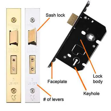 Sash locks, also known as mortice sash locks, use a combined mechanism of a deadbolt, latch and handle mechanism. A sash lock is also one of the most common styles of lever lock used on interior and exterior doors, usually fitted within the material of the door.