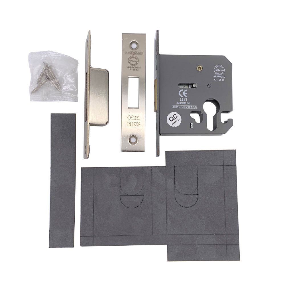 Fire test - BS476 part 22 & BS EN1634 Fire Rating - FD30/60 CE Mark - Yes Kit contains: 1 x 76mm BS Euro Profile Deadlock (SS)1 x 75 x 105mm Universal BS Intumescent kit to suit 76mm sashlock lock with backset and strike plate1 x 70mm Euro Profile Cy... Read More