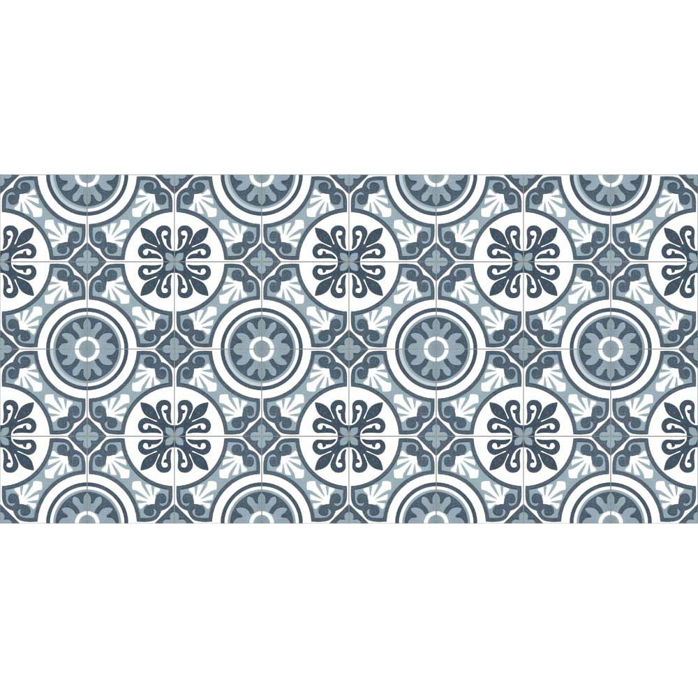 • Features a classic mosaic tile pattern design in a variety of blues and greys
