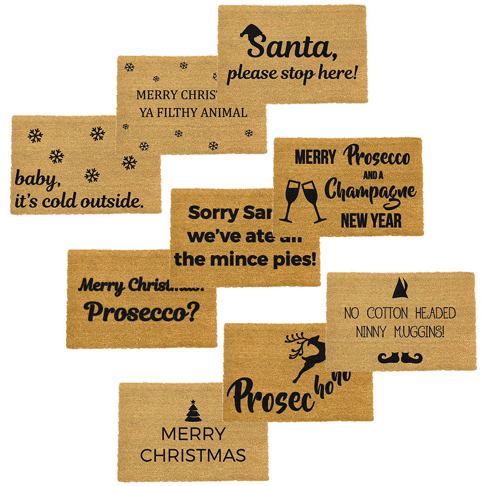 Give you and your guests a grand welcome to your home this Christmas with a designer doormat from Artsy. All Artsy doormats are crafted from a high quality tufted coconut fibre and are professionally dyed using exterior paints made to be durable and stick to the coir, whereas some others on the market are made using food dyes and not made to last.|The Christmas range of Arsty doormats include Christmas alcohol selections such as Sherry & Prosecco, your favourite season greetings and well know quotes from Christmas films. Each one has been designed to ensure they fit perfectly into the season.
