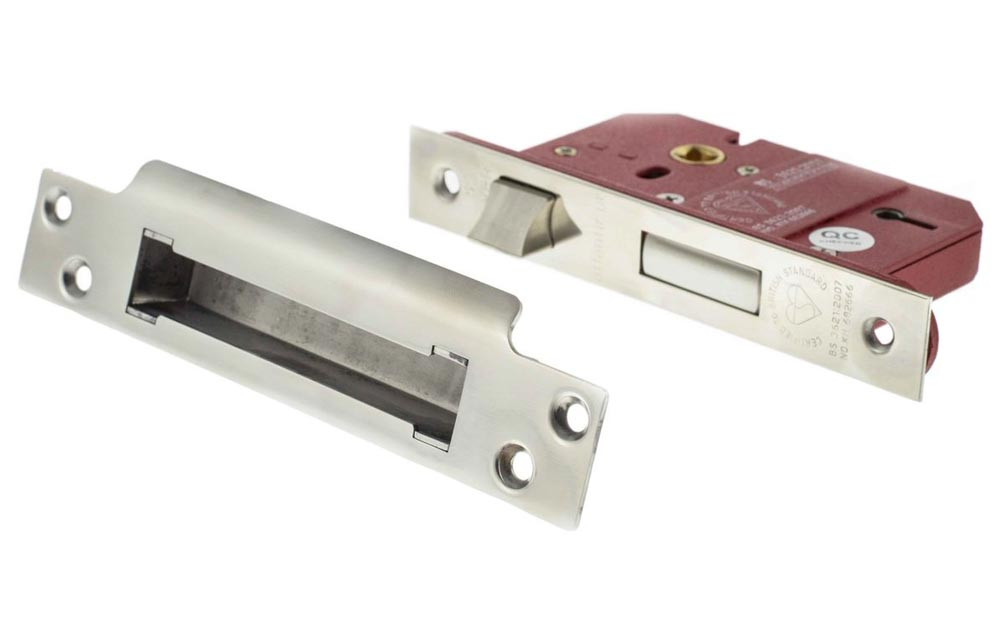 One of the most common types of door lock fitted to internal and external wooden doors, a sash lock consists of a metal spring latch, which ensures the door remains completely closed even when unlocked, and a dead bolt which locks the door by turning a key.