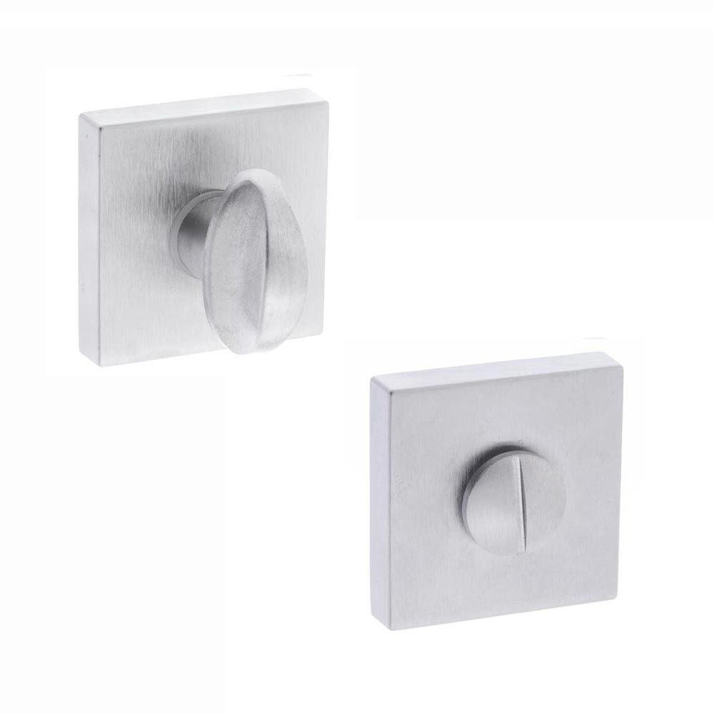Turn and release sets are specifically designed for bathroom doors with door handles and door knobs on a rose. Situated beneath the door handle, the simple turn and release mechanism for locking and unlocking bathroom doors provides privacy to the occupant. For added safety, should immediate access to the bathroom be needed from outside in an emergency, most turn and release doors have an emergency point which can be used to unlock the door using a coin or flat headed screwdriver. Available in a variety of finishes, turn and release locks can easily be matched to your specific door handle or door knob finish.