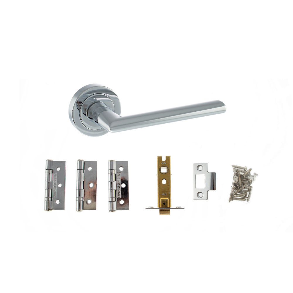 Experience sophistication and reliability with the Atlantic Georgia Polished Chrome Door Handle Pack, offering a seamless solution for your door fittings. This comprehensive pack features a designer lever with a stunning polished chrome finish, ensuring a sleek and contemporary look for any door it graces.
