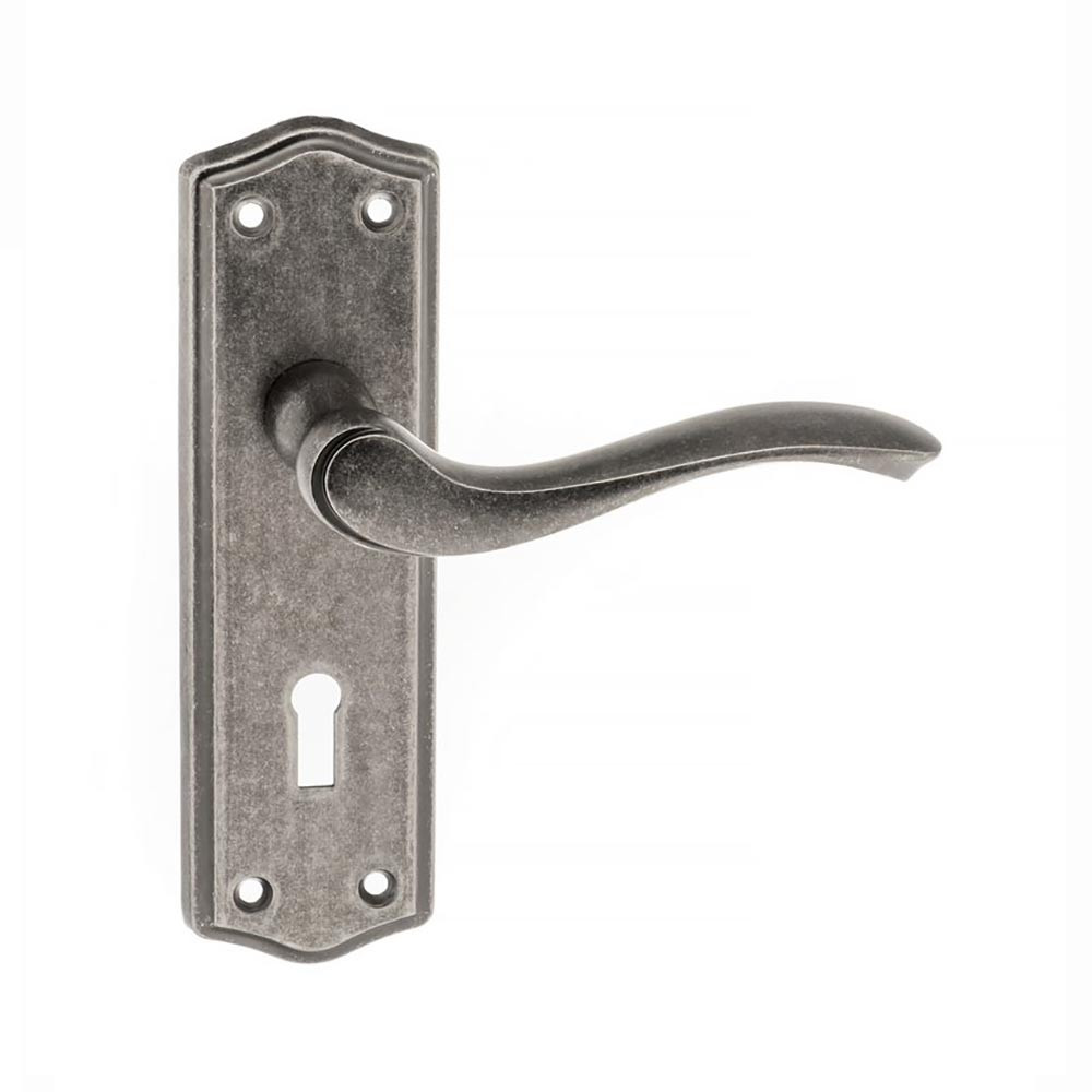 Features & Benefits: Atlantic Old English Warwick Key Lever on Backplate - Distressed Silver