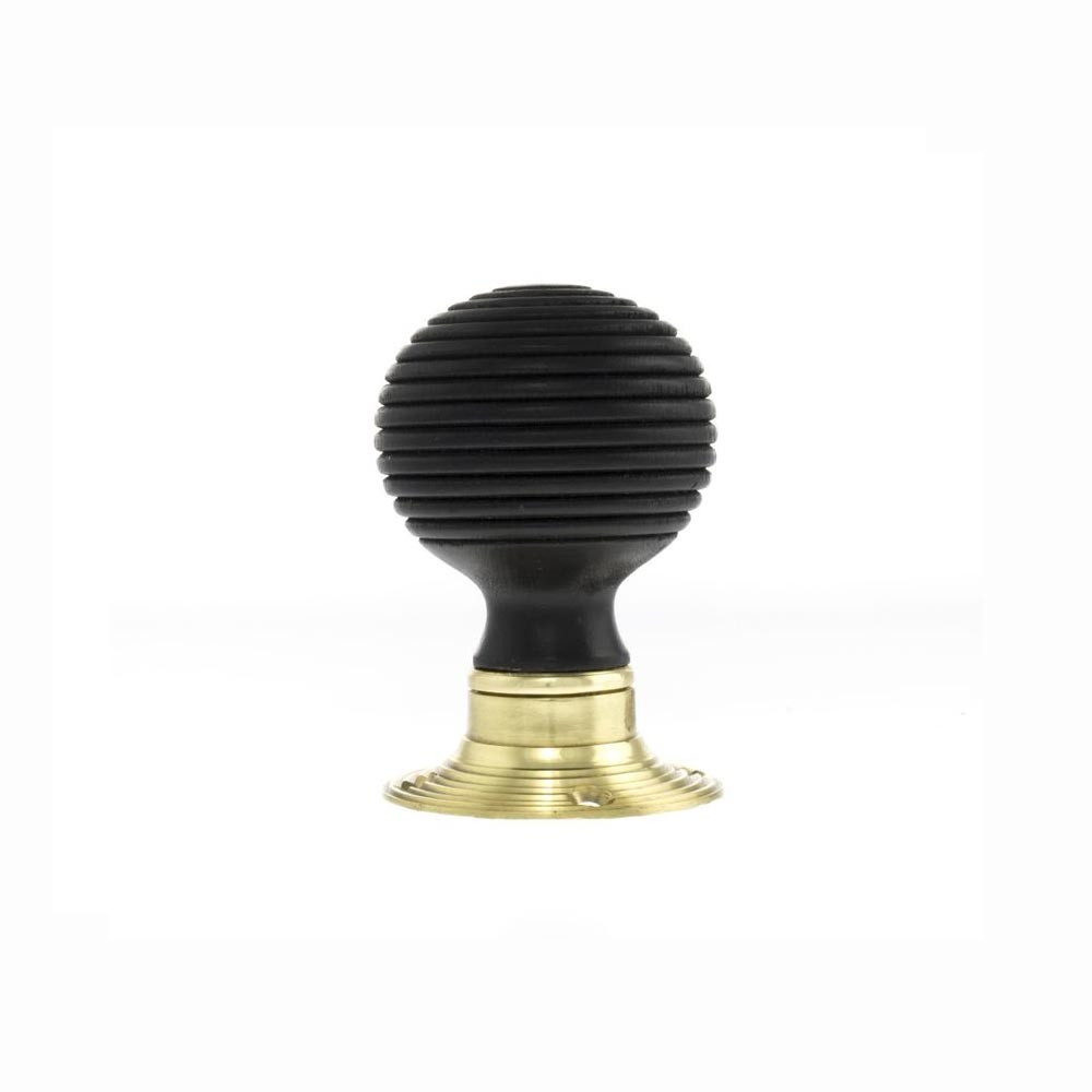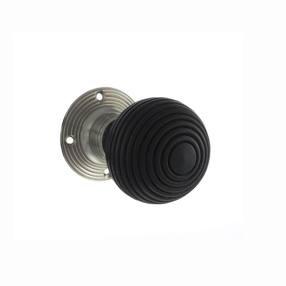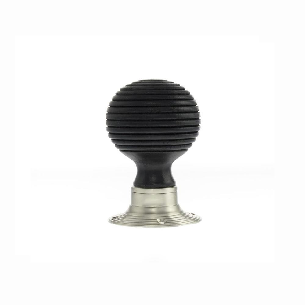 Atlantic Old English Whitby Ebony Wood Reeded Mortice Knob on 60mm Face Fix Rose
