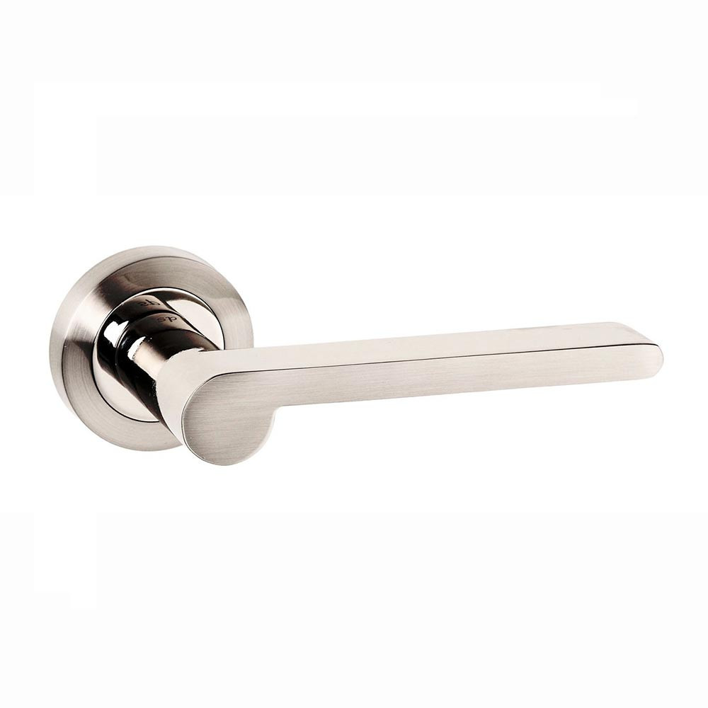 You'll find that this Atlantic Senza Pari Darrio Designer Lever on Round Rose comes in Satin Nickel & Polished Nickel, this finish is a combination of brushed silver Satin Nickel and glamorous Polished Nickel. The best accompanying products for this finish are, Satin Nickel or Polished Nickel. Atlantic's Senza Pari means 'without equal', this is an Italian designed range of contemporary levers. The highly modern angular shapes and distance designs are perfect for someone who wants to stand out and create a strong focal point within an interior.