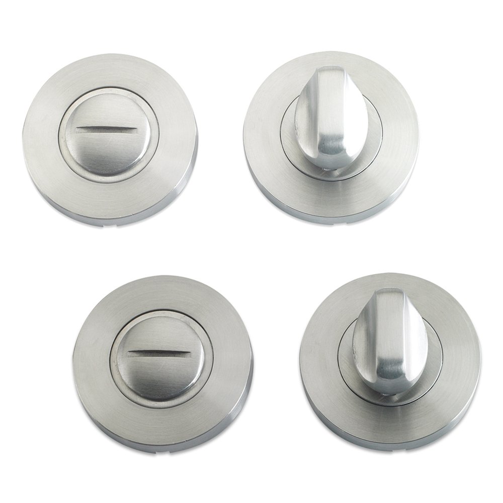 These contemporary stainless steel thumb turn locks are the perfect option for bathroom, toilet and WC doors. Appropriate for use in an industrial environment and at home, they feature an emergency release point to ensure you can access locked doors from the outside in an emergency.