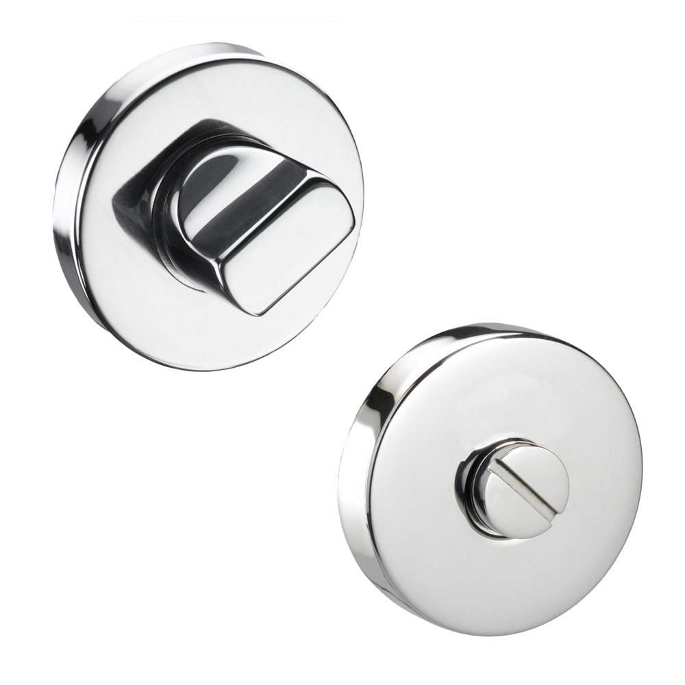 MATERIAL:Chrome PlatedTYPE:Privacy lock thumb turnsSTYLE:Round RoseFIXINGS:Wood screw fixings includedDescription Bathroom turn and release with no indicator Push fit rose Emergency "coin release" on outside Finished in Polished Stainless Steel This item works in conjunction... Read More