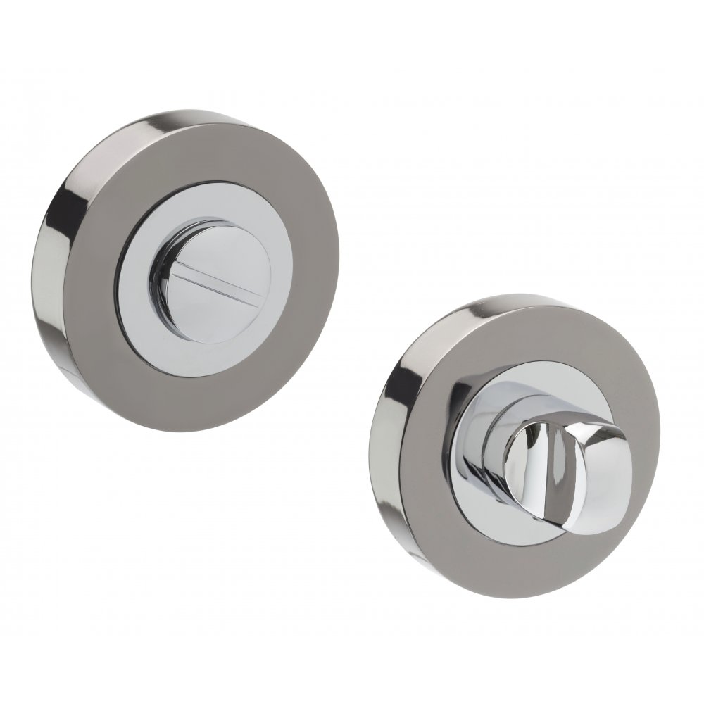MATERIAL: Chrome PlatedTYPE: Privacy lock thumb turnsSTYLE: Modern two toneFINISH: Duo Black (Mixed Polished and Black Chrome Plated)FIXINGS: Wood screw fixings included Description   Bathroom turn and release with no indicator Concealed fix Scr... Read More