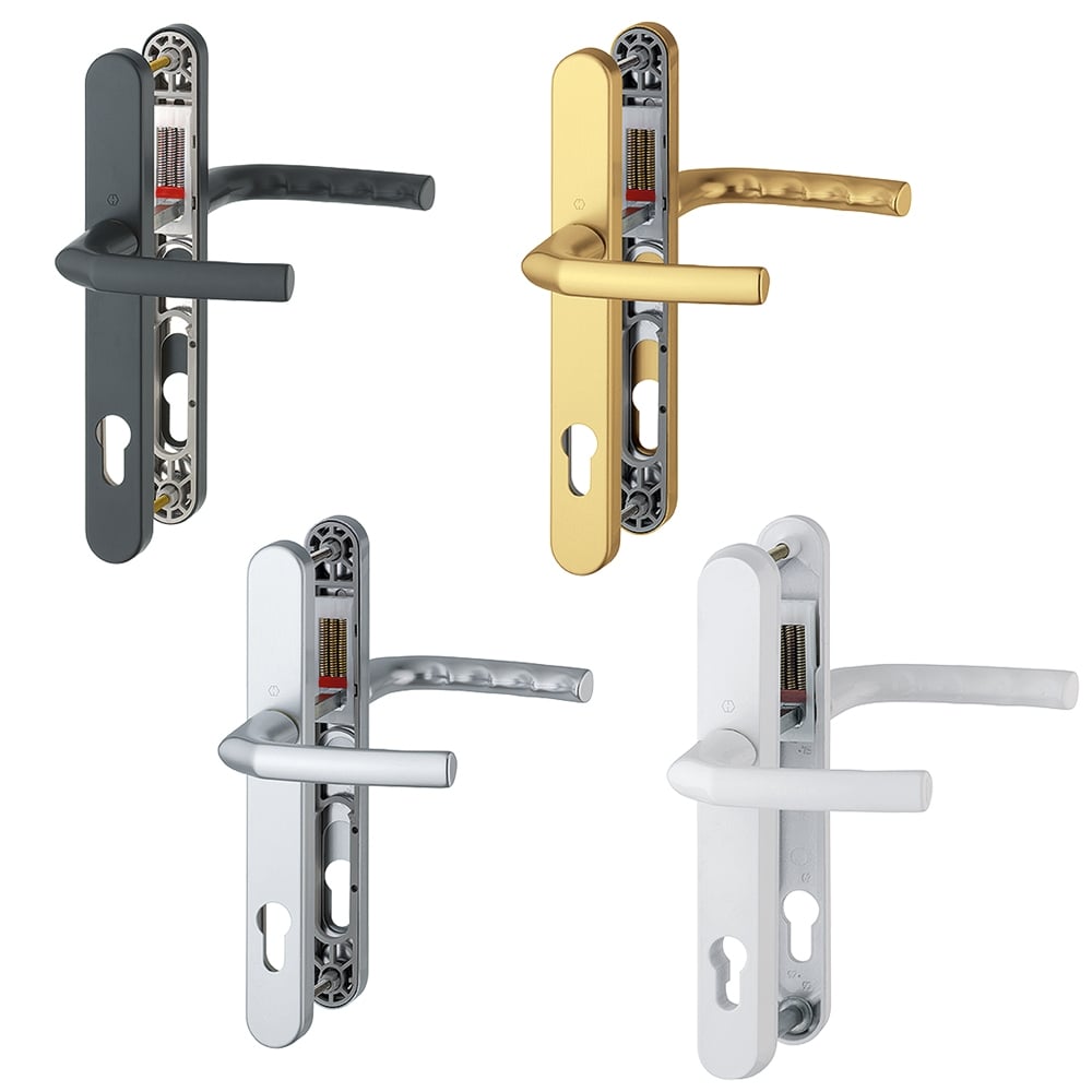 Please note: these handle pairs are supplied with one spring and are not suitable for wooden doors, they are designed for UPVC doors from 56mm to 70mm thick.