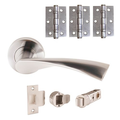 A sleek and stylish addition to any internal door, JB Kind's Blade Passage Lever on Rose Door Handle Pack is a modern, easy-to-install door handle set comprising a pair of levers, three ball bearing hinges and a SmartLatch. Featuring a unique twisted lever design with a satin chrome finish, this door handle pack will bring a chic, modern finish to any room.