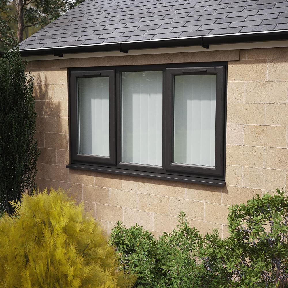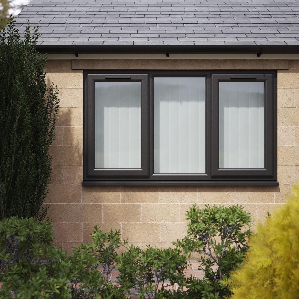 Features & Benefits: Crystal Fixed Centre Left & Right Hand Side Hung Black/White uPVC Clear Triple Glazed Window