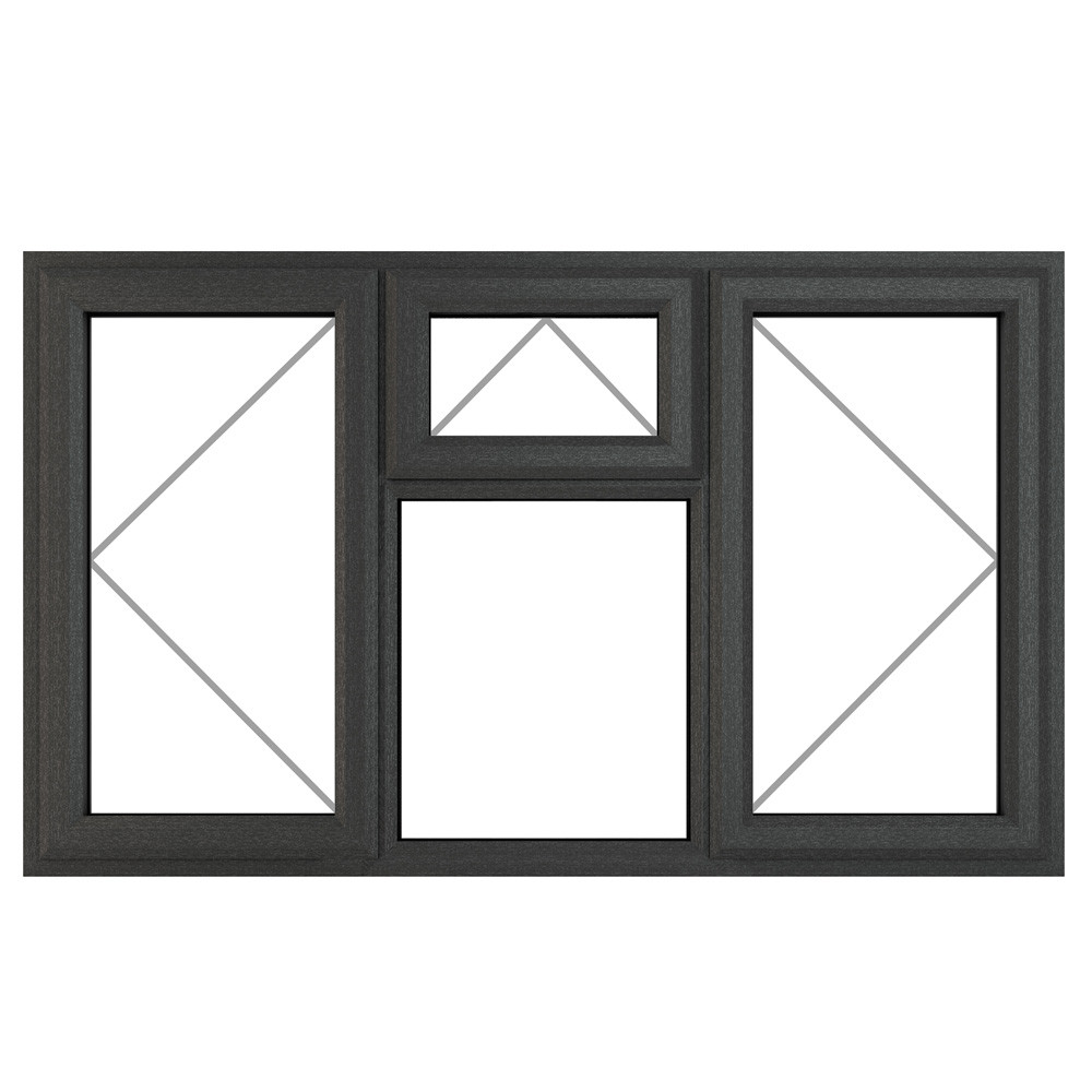 With a low sightline gasket to allow for a greater area of visible glass, this Crystal Clear Glazed Fixed Light Centre Casement Grey uPVC Window enhances views with left and right-hand side-hung and top-opening windows fitted on either side. Not only sleek in appearance, but t... Read More