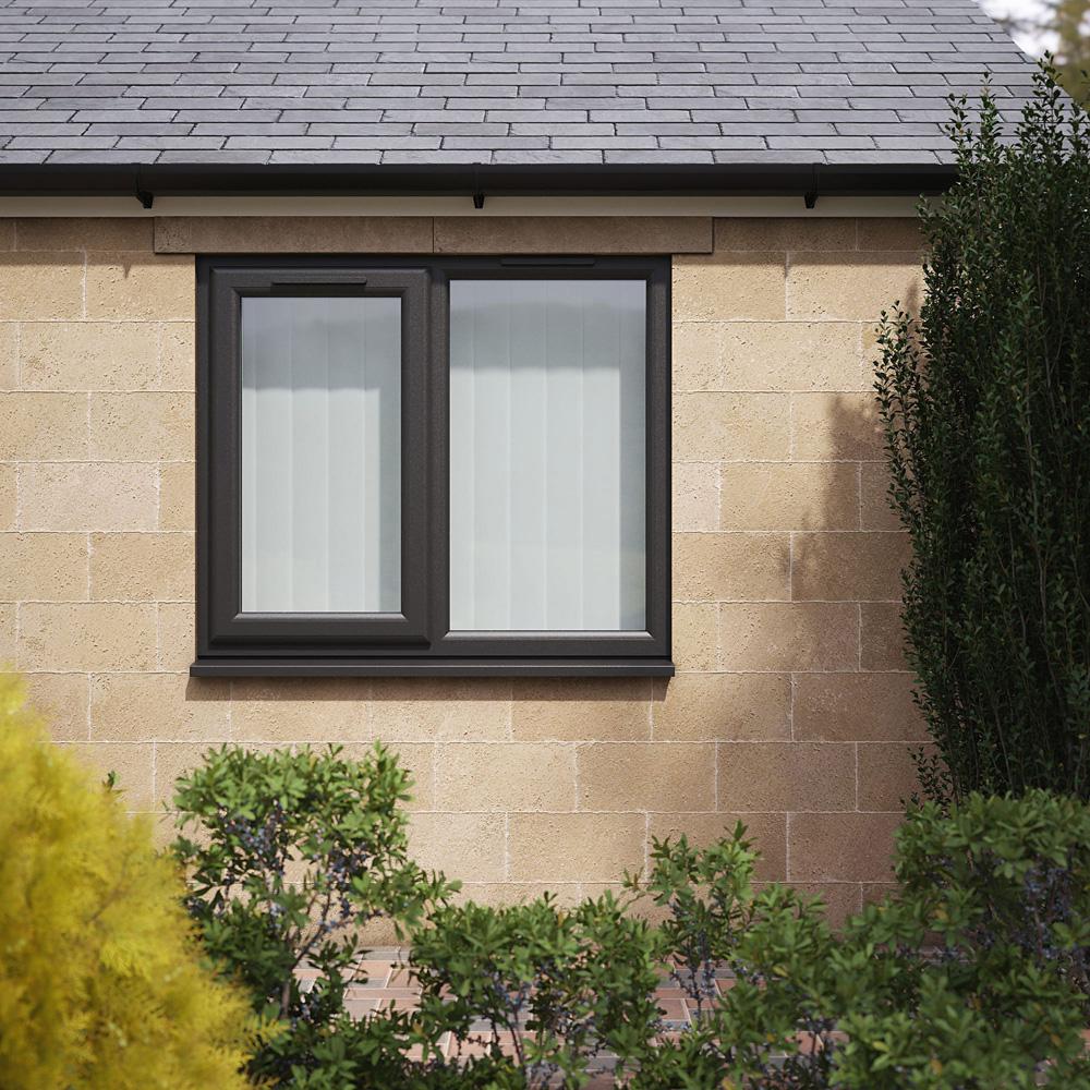 Features & Benefits: Crystal Left Hand Side Hung with Fixed Light Black/White uPVC Obscure Triple Glazed Window