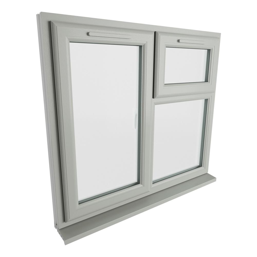 Features & Benefits: Crystal Left Hand Side Hung with Top Opening Over Fixed Light Agate Grey/White uPVC Clear Double Glazed Window