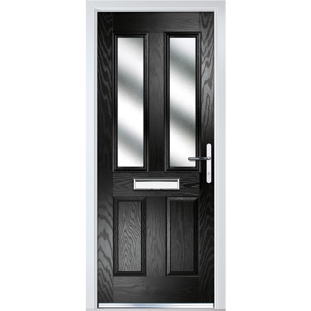 Its four-panel design consists of two large rectangular obscure glazed panels in the top half of the door, which helps to fill your home with glorious natural light. The two solid rectangular panels, positioned beneath the glazed panels, will provide an extra decorative feature, maintaining a symmetrical and attractive design. A great way to make a bold decorative statement outside your home, its rich, black finish will complement other external features, such as integral garage doors.