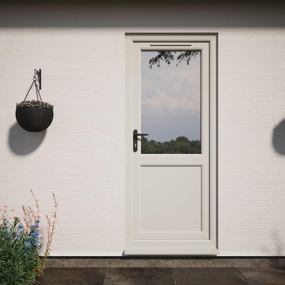Features & Benefits: Crystal Right Hand Opening Agate Grey/White uPVC Clear Half Triple Glazed Single Door