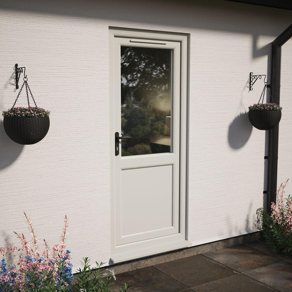Features & Benefits: Crystal Right Hand Opening Agate Grey/White uPVC Obscure Half Glazed Single Door