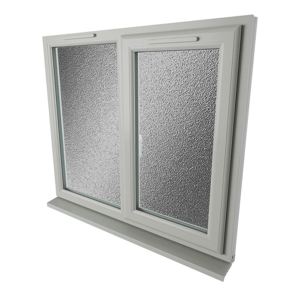 Complete your project with the Crystal Right Hand Side Hung Window with Fixed Light in agate grey and white. This A Rated obscure double glazed uPVC window uses high performance glazing to support improved thermal efficiency while offering enhanced privacy and a refined, modern finish.