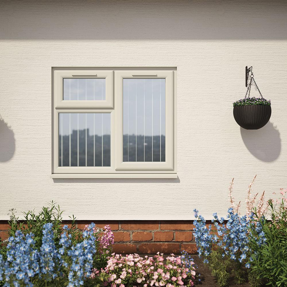 Features & Benefits: Crystal Right Hand Side Hung with Top Opening Over Fixed Light Agate Grey/White uPVC Clear Double Glazed Window
