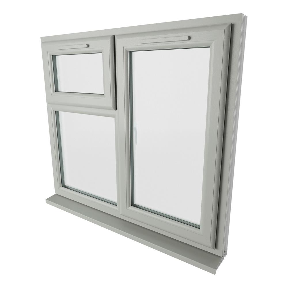 Features & Benefits: Crystal Right Hand Side Hung with Top Opening Over Fixed Light Agate Grey/White uPVC Clear Triple Glazed Window