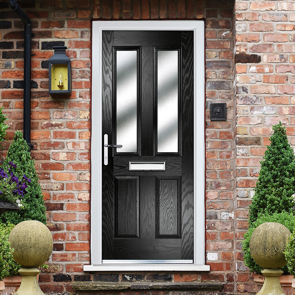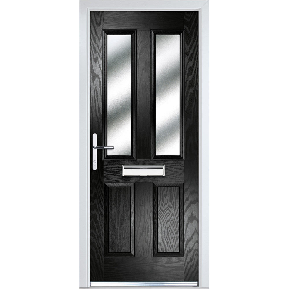 Features & Benefits: Crystal Right Hand Fully Finished 4 Panel Black Composite Glazed Front Door - 2055mm x 920mm (80.9 x 36.2 inch)