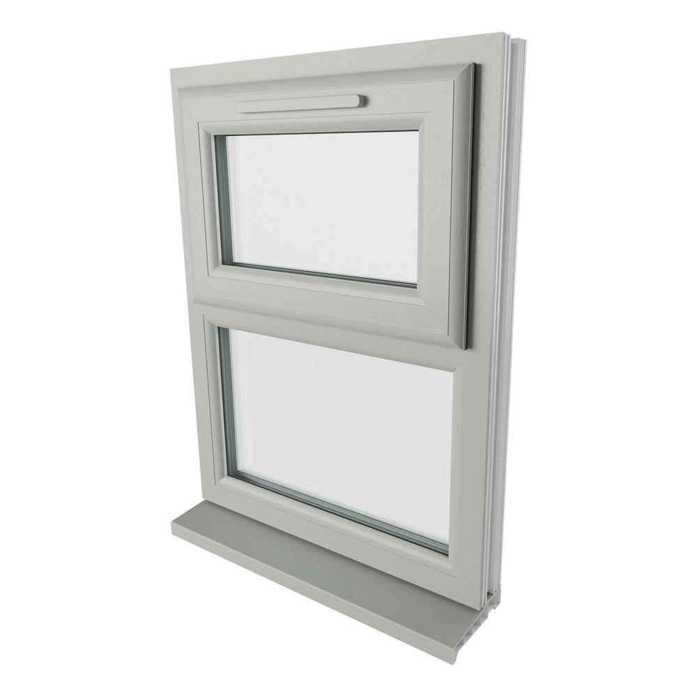 Features & Benefits: Crystal Top Hung Opening Over Fixed Light Agate Grey/White uPVC Clear Double Glazed Window