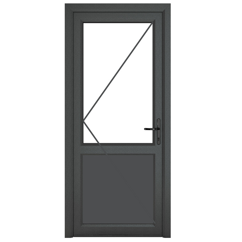 Find out moreIdeal for properties that wish for natural light, this Crystal uPVC Grey Full Glass Single Door is clear glazed with a half-glass, two panel design. The door is also left-hand opening and has a modern but minimalist appearance.