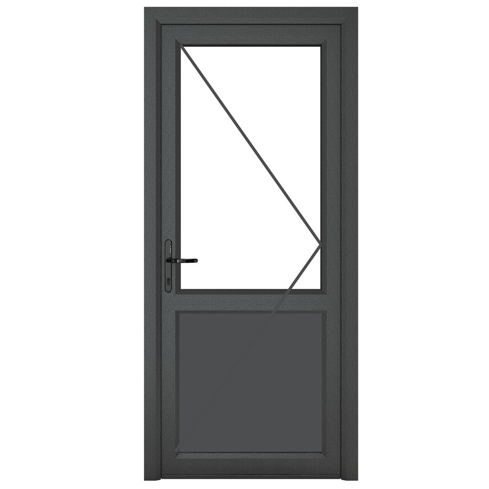 Find out moreWith two panels, one with clear glazing to enhance the amount of natural light let into your property, this Crystal uPVC Grey Right-Hand Opening Single Door is a fantastic fit for homes that enjoy bright and airy spaces. The Grey 7016 exterior and White interior are easy to wipe down and resist cracking, peeling and fading. This means that maintenance is minimal without painting, treating and sanding throughout use.