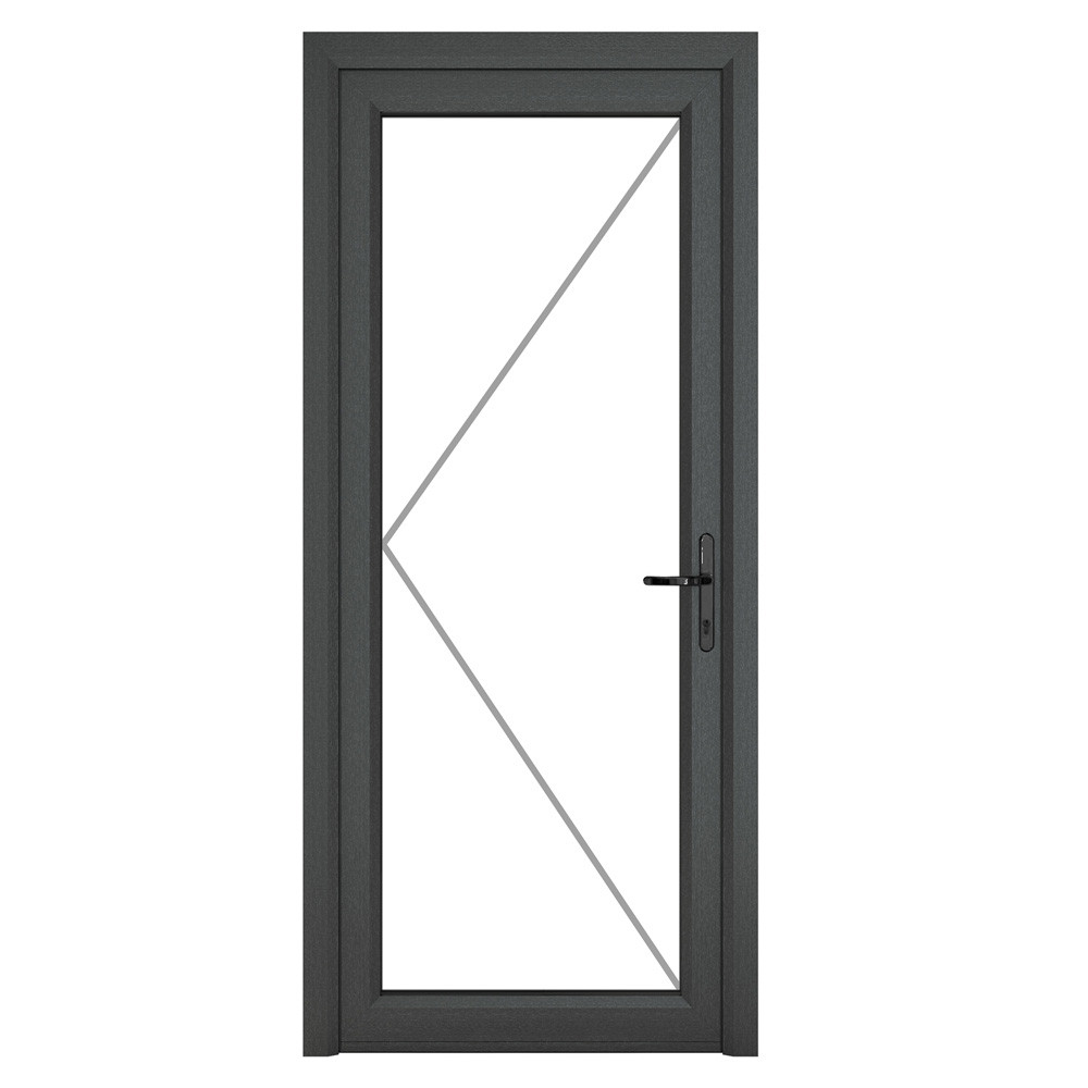 With an array of dimensions available, this Crystal uPVC Grey Full Glass Single Door is left-hand opening and clear glazed for natural daylight. The external surface is a sleek Grey 7016 and the internal is White, an excellent combination that flatters both interior and exteri... Read More