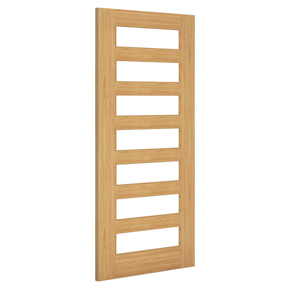 Features & Benefits: DISCON - Deanta Biarritz Contemporary Fully Finished Oak Bevelled Glazed Internal Door