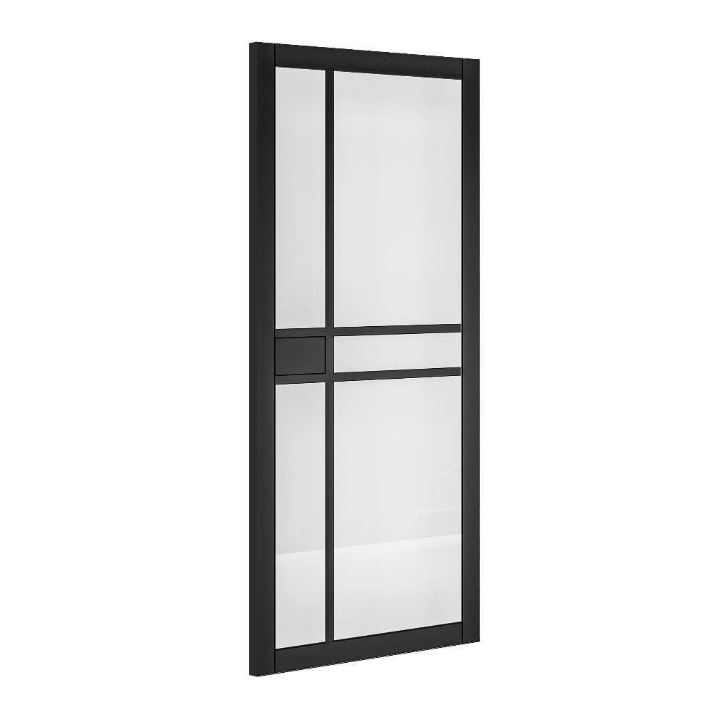Deanta Dalston Urban Industrial Fully Finished Black Clear Glass Internal Door