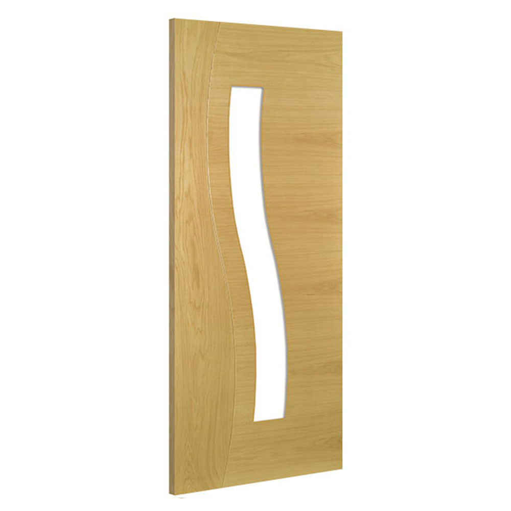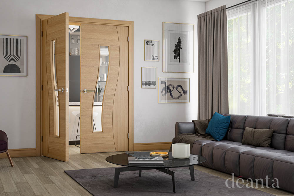 The Cadiz range of internal doors from Deanta features modern curves and traditional wood grain. This clear glazed oak door is delivered fully finished. The contemporary style of this door makes it a perfect choice for on-trend interiors.