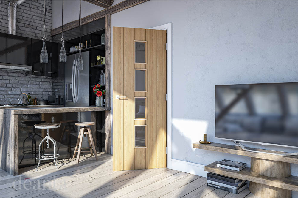 Features & Benefits: Deanta Galway Unfinished Oak Glass Internal Door
