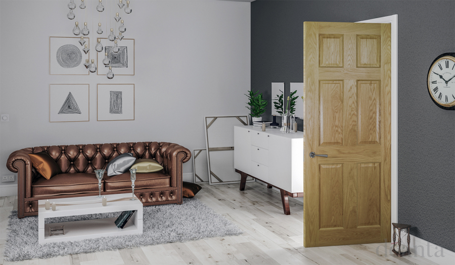 The Oxford internal door range from Deanta features a traditional six-panel design. This FD30 oak fire door is delivered fully finished and offers a 30 minute fire rating. A Victorian style of door is an excellent choice for a traditional classic interior.