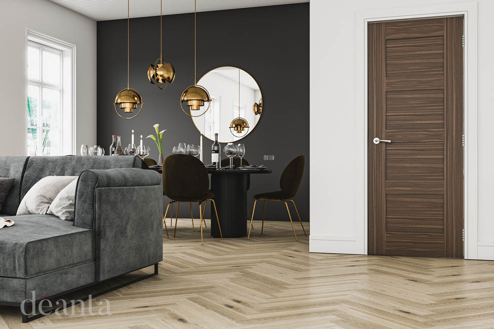 Natural Walnut and Walnut effect internal doors offer warmth and sophistication to any setting. The deep coloured wood compliments both contemporary and traditional homes.