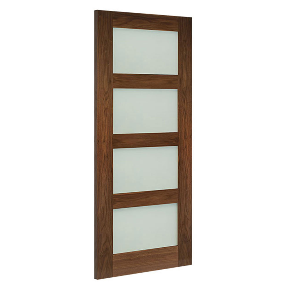 The Coventry door range from Deanta brings a classic yet bold style to any home with its four panels and elegant, clean lines. This frosted glazed walnut door is delivered fully finished. The Shaker style of this door makes it an extremely versatile option.