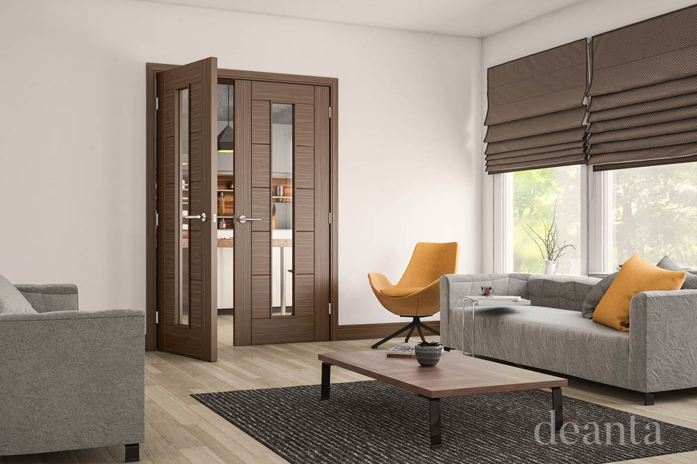 Features & Benefits: Deanta Seville Fully Finished Walnut Glazed Internal FD30 Fire Door