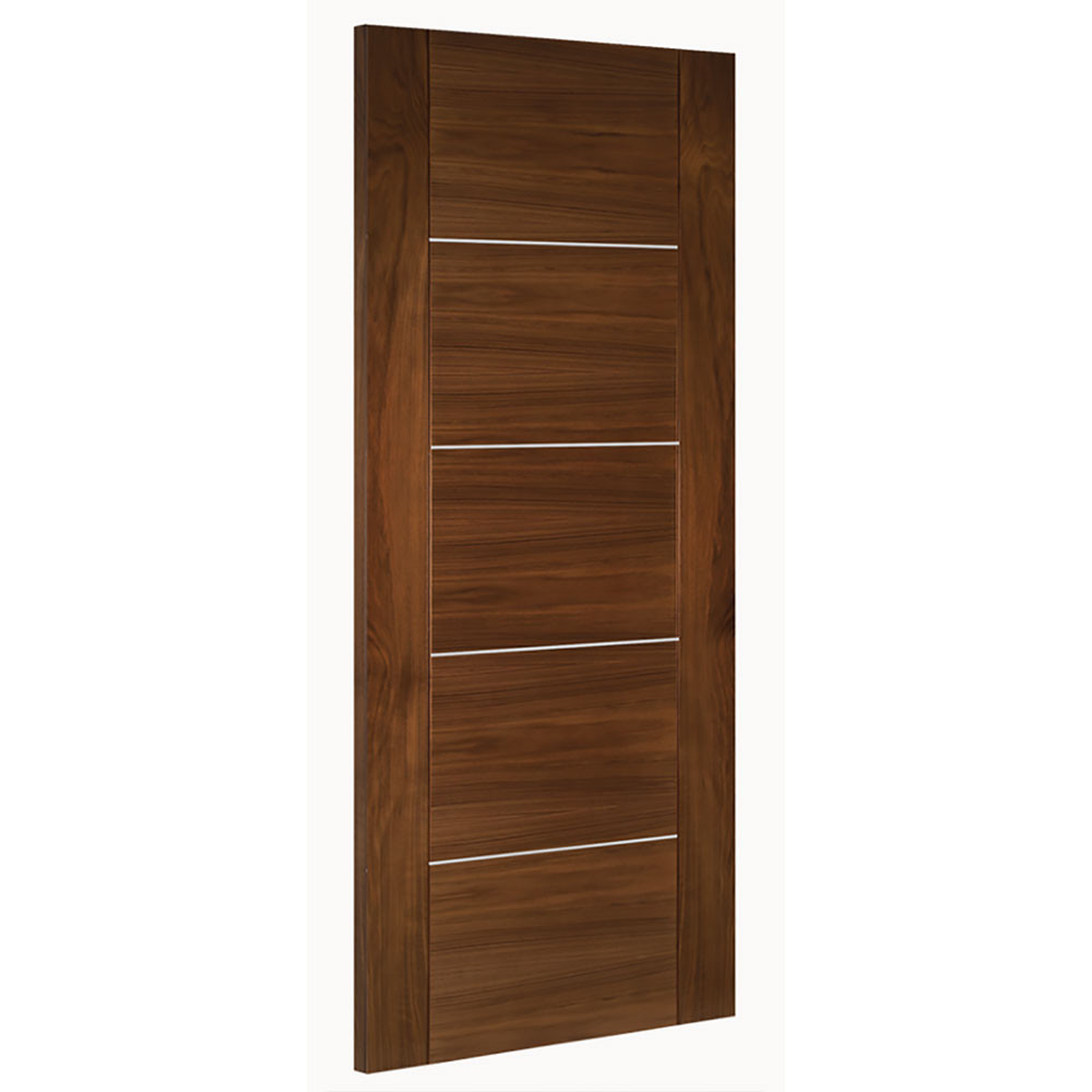 The Valencia range of internal doors from Deanta has a five panel ladder style design and contemporary aluminium inlays. This walnut door is delivered fully finished. The contemporary style of this door makes it a perfect choice for on-trend interiors.