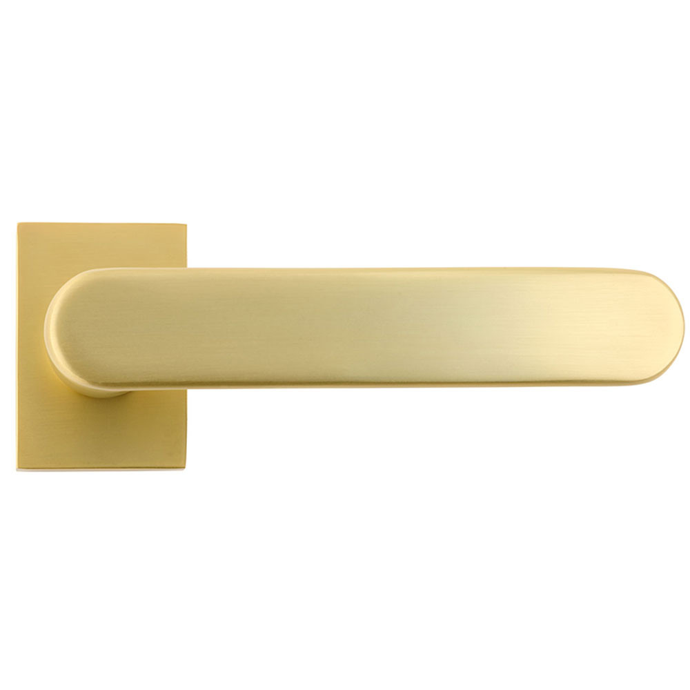 The Deanta Juno Lever on Square Rose comes in a timeless satin brass finish. This handle creates an attractive finish that complements urban style doors, making it perfect for on-trend interiors.