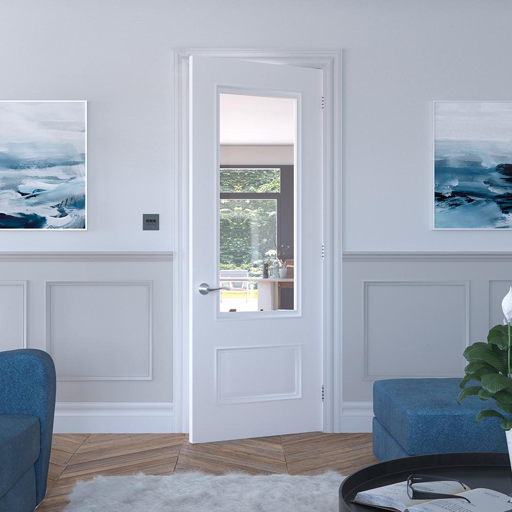 Features & Benefits: Deanta Sandringham White Primed 1 Light Glass Internal FD30 Fire Door