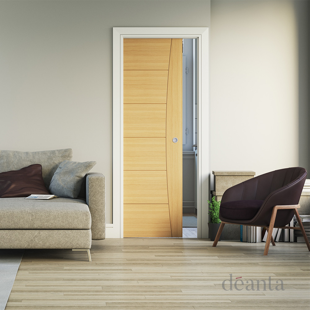 Unlike a traditional hinged door which opens outwards into a room, a pocket door is a top hung sliding internal door which disappears into a recessed compartment within the wall, once fully opened. Due to the space saving possibilities, pocket doors are becoming an increasingly popular choice of internal door around the home.