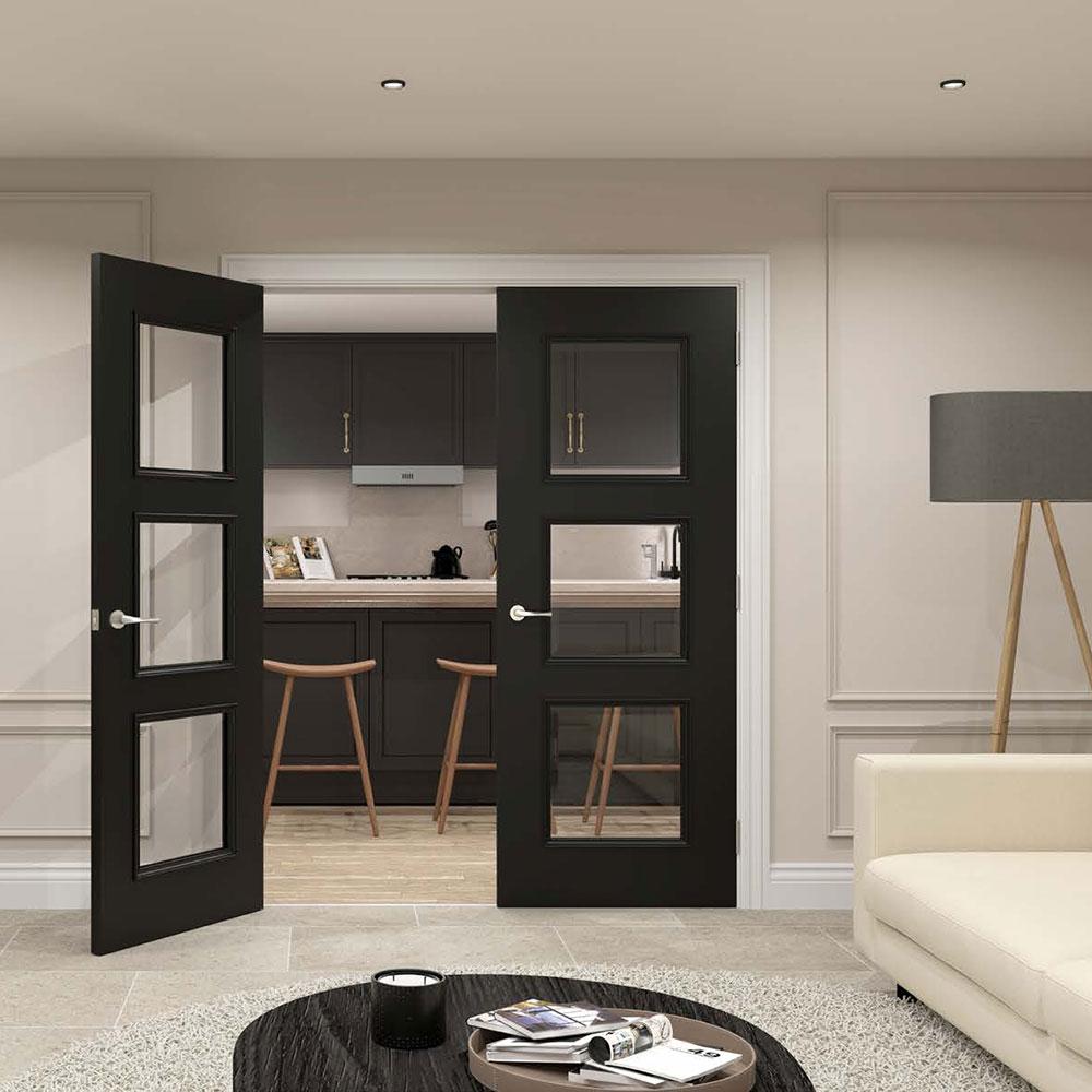 Features & Benefits: Deanta Trinity Black Fully Finished 3 Light Clear Bevelled Glass Internal Door