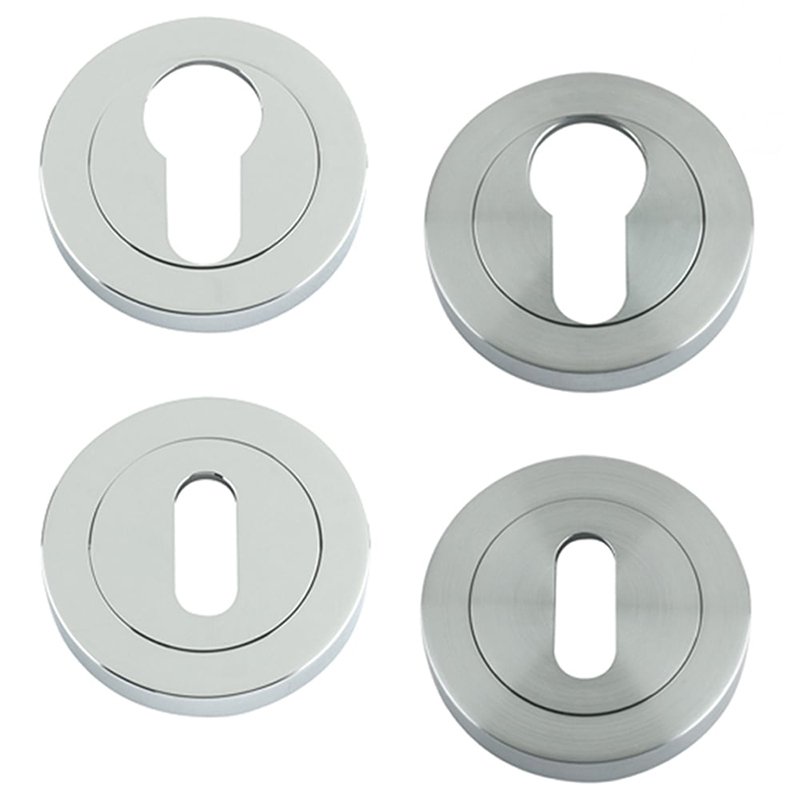 This Designer Euro or Standard Profile Zinc Escutcheon comes in two chrome finishes (satin and polished), and has been designed to act as a keyhole covert that protects and secures your door lock.