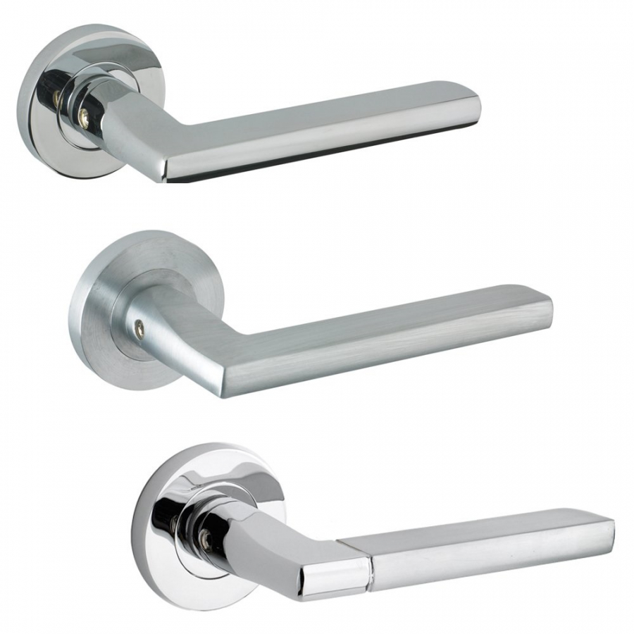This high quality lever on rose fire rated door handle pair has been approved by 'British Standards' and comes in three different finishes, polished chrome, satin chrome or satin/polished chrome.