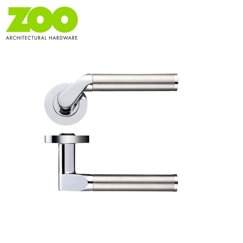 MATERIAL: Zinc Base Material TYPE: Lever on Rose Door Handle Pair STYLE: Modern Screw on Rose Handle FINISH: Polished & Satin Chrome FIXINGS: Recommended fixings M4 Male / Female Bolts Supplied ADDITIONAL INFORMATION: Suitable For 30 & 60 Minute Timber Doors Description ... Read More