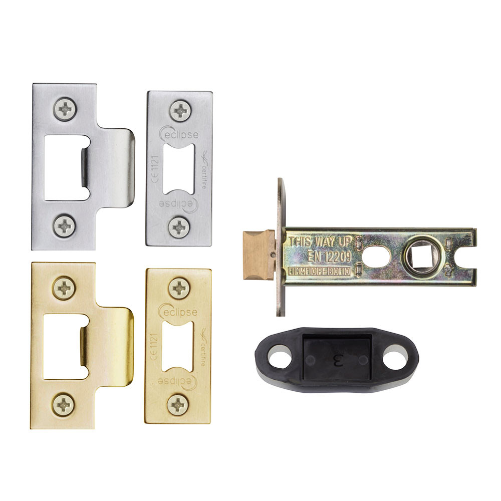 Eclipse Heavy Duty Tubular Mortice Latch FD60 Fire Rated (76mm) - Electro Brass & Satin Chrome
