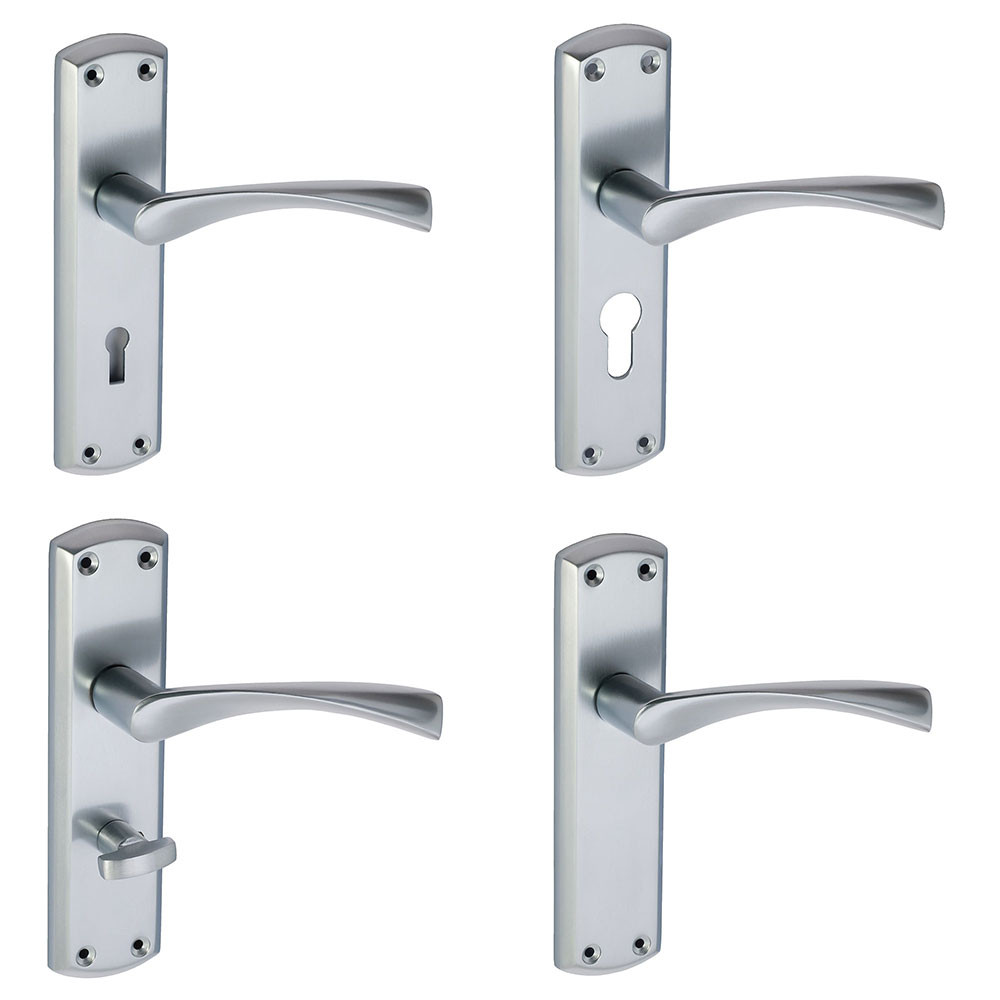 This Eclipse Monza Door Handle on Backplate in Satin Chrome is a contemporary take on the traditional sprung door handle lever on backplate. It comes in a modern satin chrome finish that is a versatile choice that works brilliantly in rooms with both modern styles and rooms with a more timeless interior design scheme. Available in a euro profile, a bathroom handle, a lever latch handle and a lever lock handle design, you are sure to find the right internal door handle for your needs. The spring lever mechanism will ensure that it returns to its original position once the lever is released.