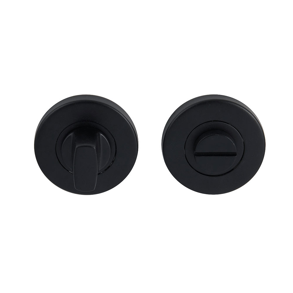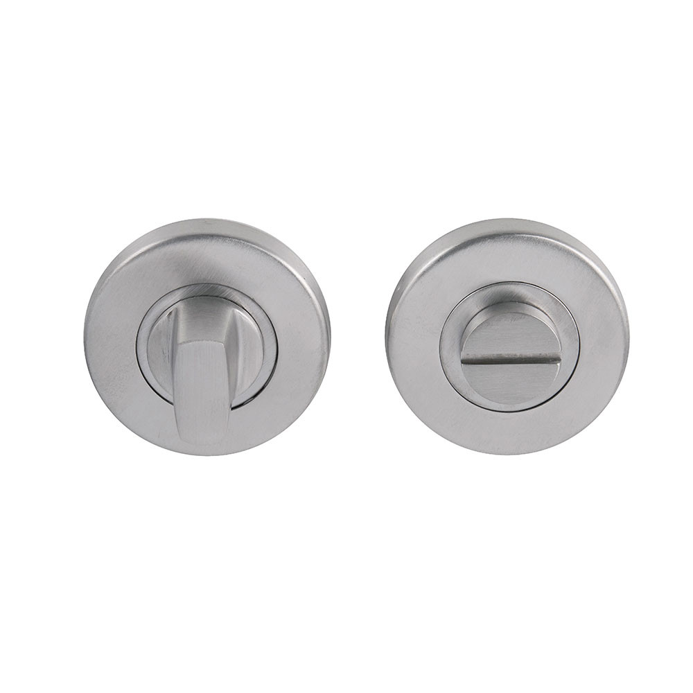 Turn and release sets are specifically designed for bathroom doors with door handles and door knobs on a rose. Situated beneath the door handle, the simple turn and release mechanism for locking and unlocking bathroom doors provides privacy to the occupant. For added safety, should immediate access to the bathroom be needed from outside in an emergency, most turn and release doors have an emergency point which can be used to unlock the door using a coin or flat headed screwdriver. Available in a variety of finishes, turn and release locks can easily be matched to your specific door handle or door knob finish.