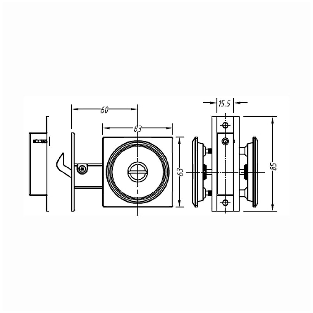 This round or square bathroom door lock is to be used on sliding doors. The lock is engaged from the inside and has a coin slot release on the outside in case of emergency.